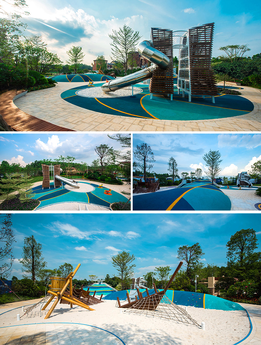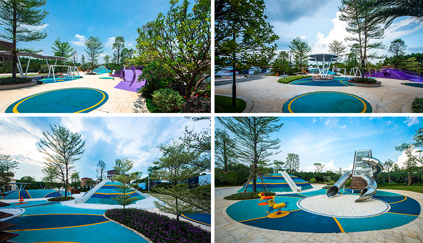 佛山云東海地區(qū)自古以來就水面彌漫百里,稱之“古云東海”。云東海高爾夫花園洛嘉兒童主題樂園以水作為核心元素進(jìn)行發(fā)想,以創(chuàng)造五彩泡泡家園夢幻旅程為設(shè)計(jì)核心理念。設(shè)計(jì)師在這里用五彩泡泡的概念實(shí)現(xiàn)了大小朋友們的夢想,利用非動(dòng)力兒童游樂設(shè)施的概念打造兒童游樂場,為孩子們提供可持續(xù)快樂!
