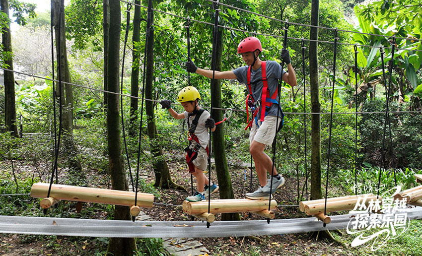 當(dāng)城市的喧囂漸行漸遠(yuǎn),一片密林在眼前展開,繩索、木橋、滑索在樹冠間若隱若現(xiàn)——這不僅是勇敢者的游戲,更是文旅項目與自然共生的典范。